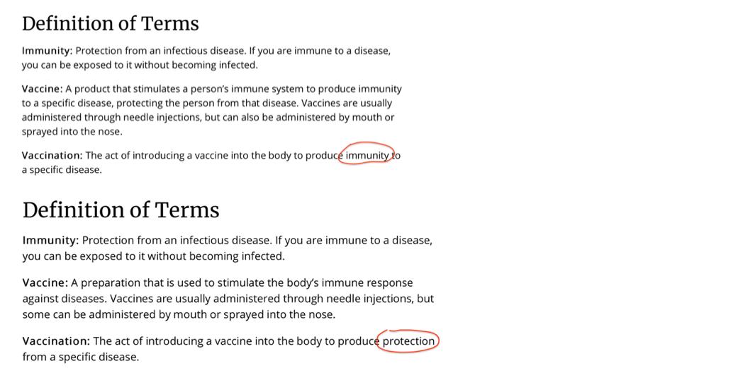 Původní definice termínu očkování byla uvedena na stránkách agentury CDC do září tohoto roku a zněla: Očkování je proces vpravení vakcíny to těla s cílem vytvořit imunitu proti specifické nemoci.